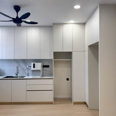This project embraces a minimalist design language, built around a soft palette of white tones, bronze detailing, and light marble grain textures to create a calm and refined living environment. Clean lines and subtle material contrasts bring depth while maintaining a timeless aesthetic.